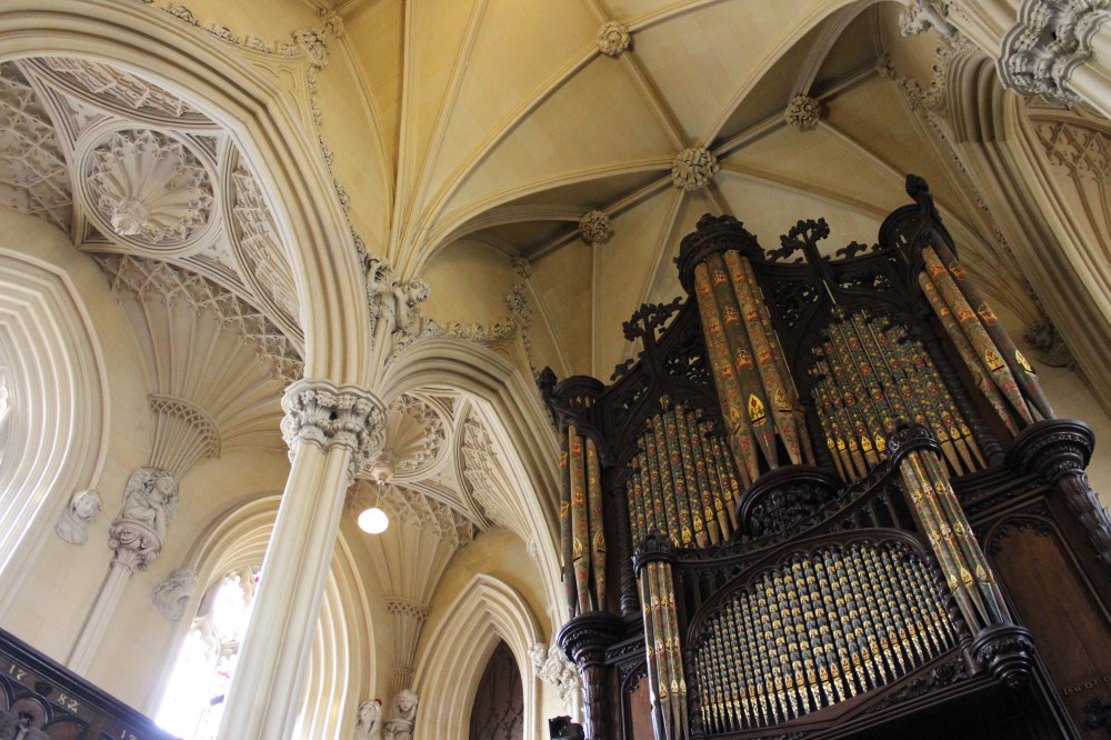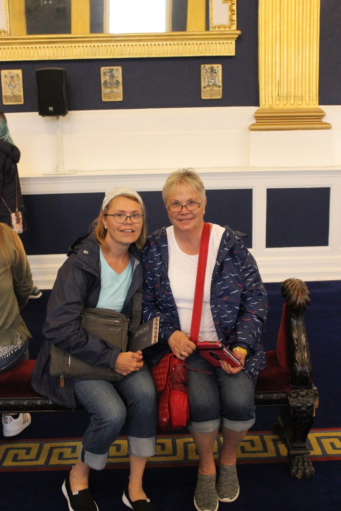 We got to see the royal throne – it was huge! The step stool was very necessary, as there was no other way to get onto the seat! It was decorated with Lions and Unicorns, holding harps.