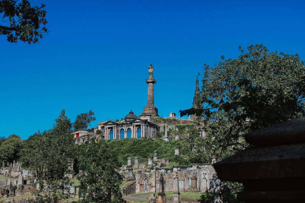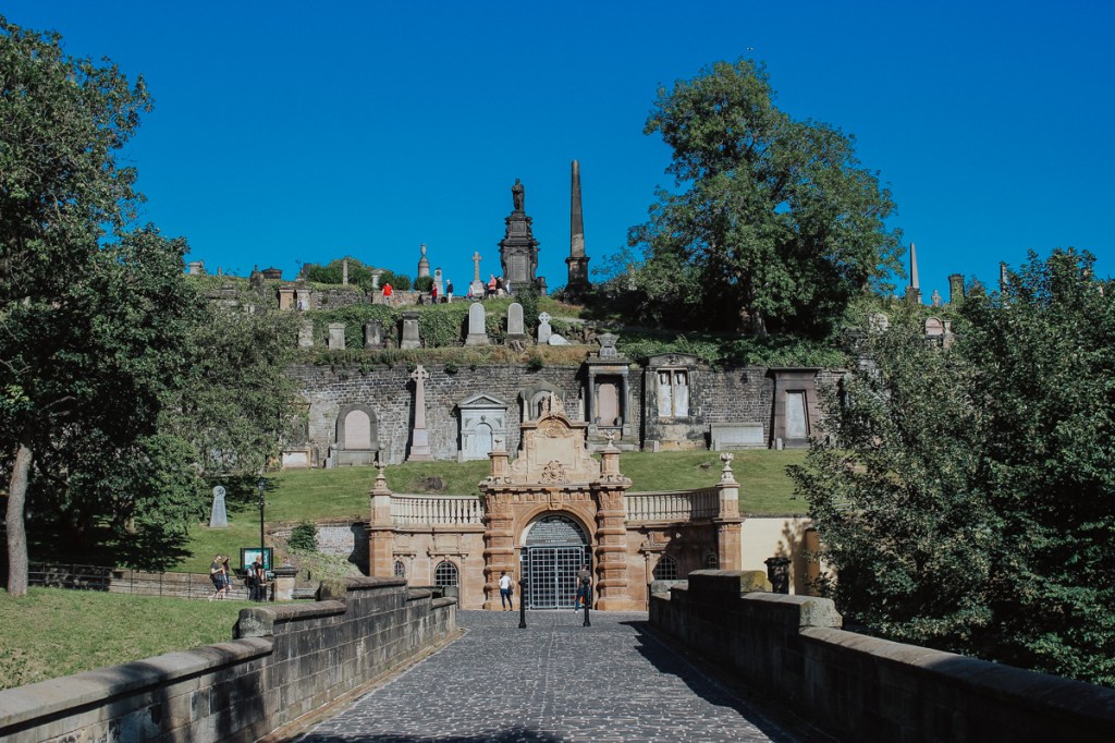 We missed the final entry into the cathedral, so we walked around and through the cemetary. We also walked across the bridge to the Necropolis of Glasgow.